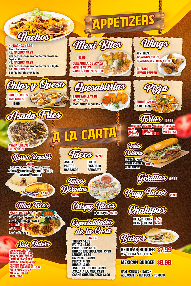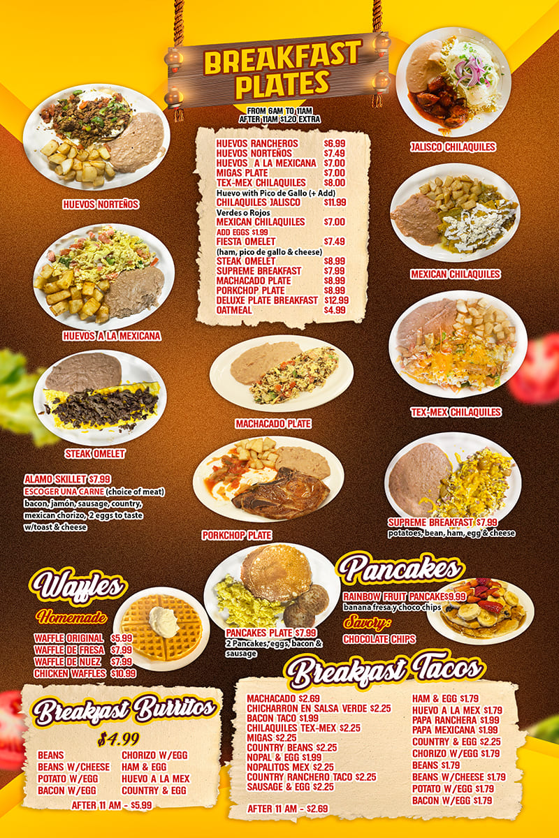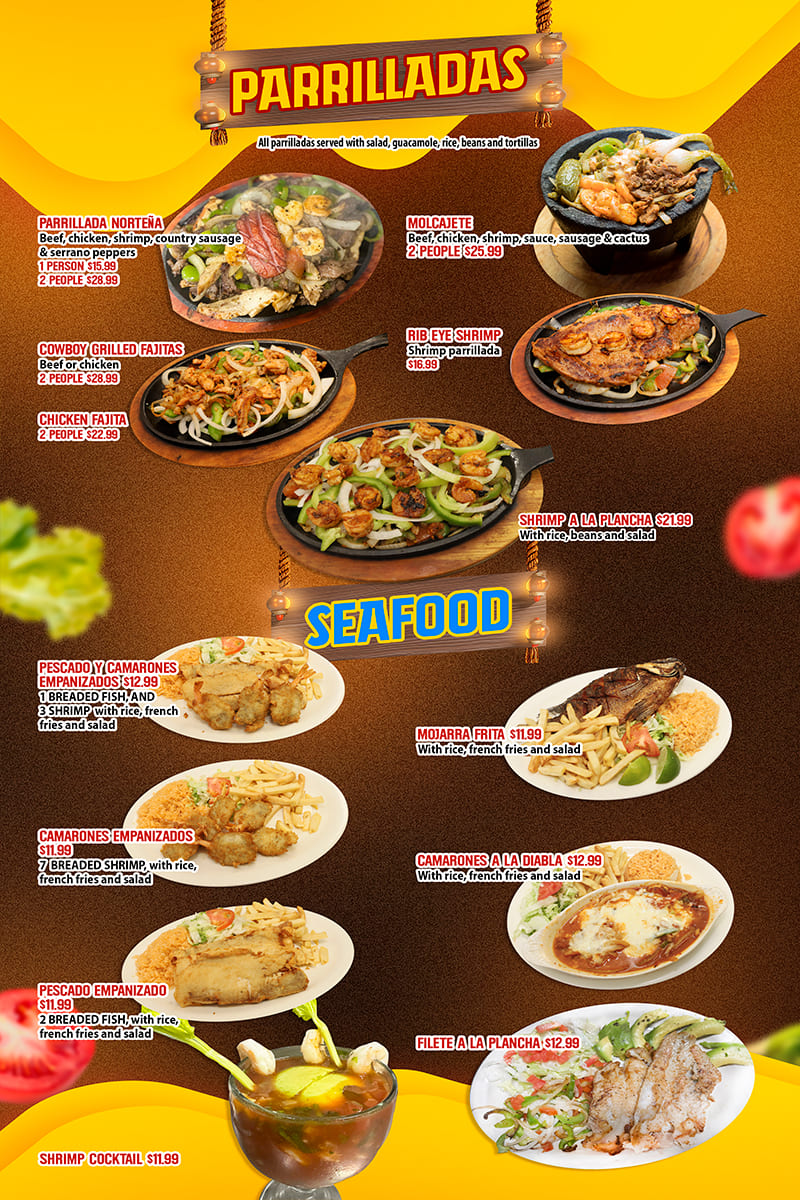 Our menu is full of Mexican favorites: tacos, gorditas, tortas, enchiladas, seafood dishes, breakfast plates, and more. No matter what you're craving, you'll find a plate that satisfies.