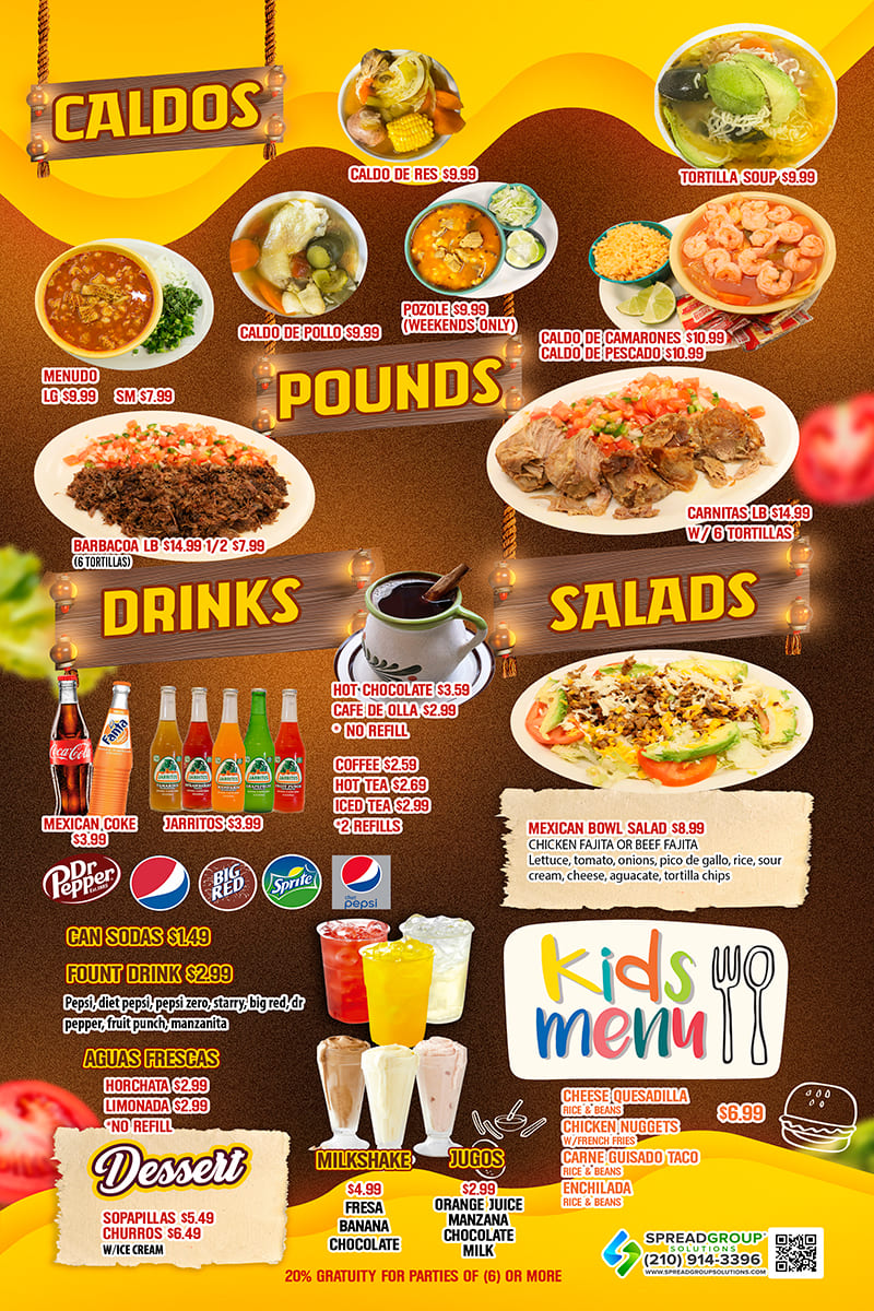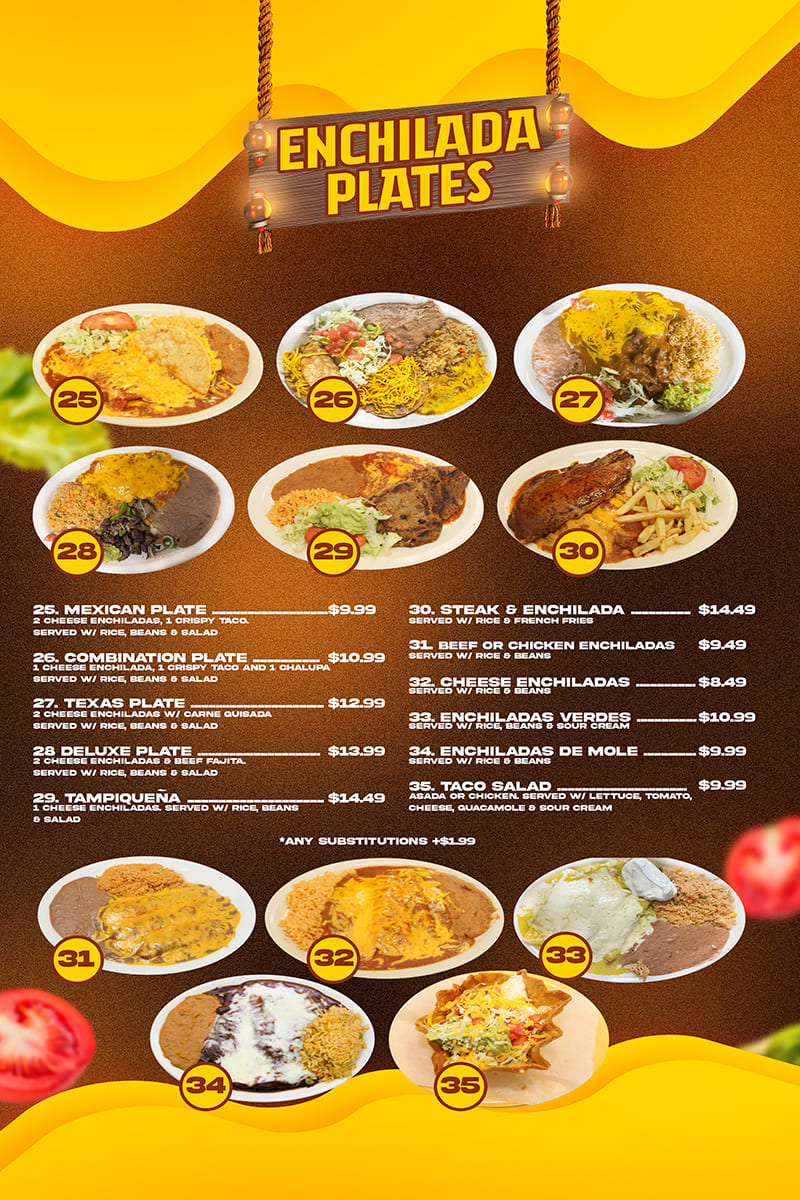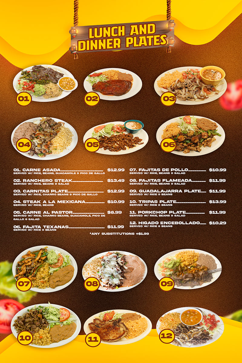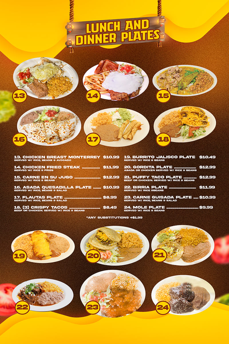 Our menu is full of Mexican favorites: tacos, gorditas, tortas, enchiladas, seafood dishes, breakfast plates, and more. No matter what you're craving, you'll find a plate that satisfies.